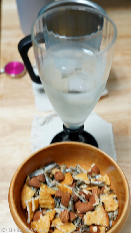 薄焼き煎餅、アーモンド、煮干しと。