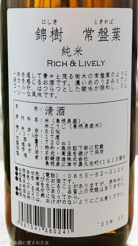 都錦酒造 錦樹 常盤葉 720ml×1本