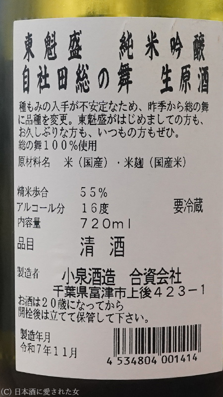 (5) 【千葉】東魁盛 純米吟醸 自社田総の舞 生原酒
