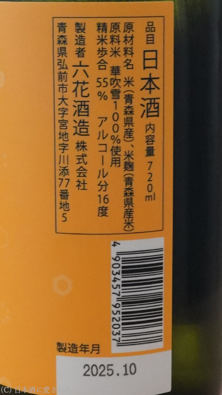 青森県の六花酒造の日本酒で、希望小売価格は2,090円 / 720ml(税込)。