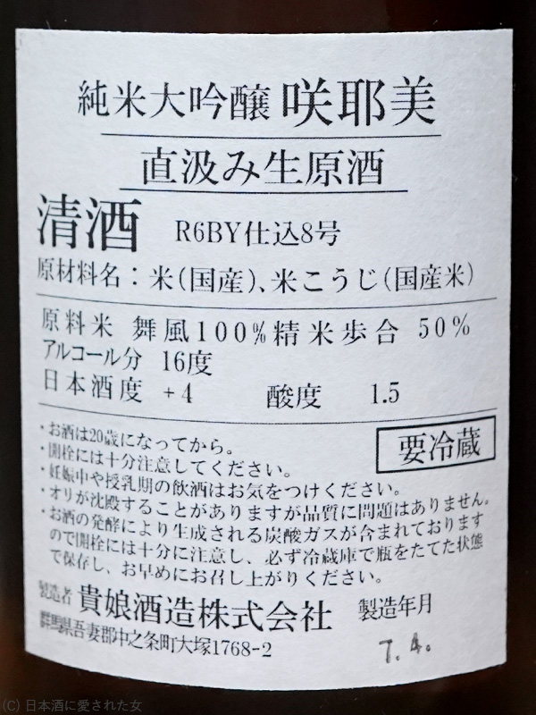 - 【群馬】咲邪美 純米大吟醸 直汲生原酒 舞風