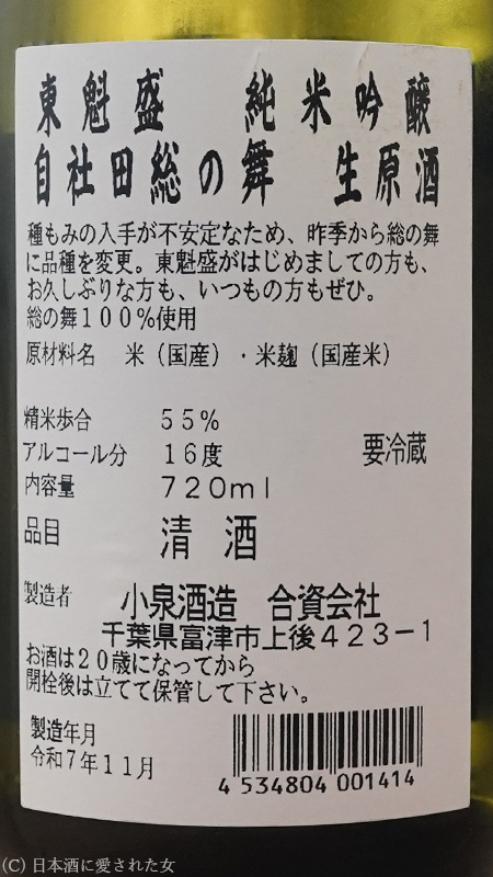 (3-3)【千葉】東魁盛 純米吟醸 自社田総の舞 生原酒